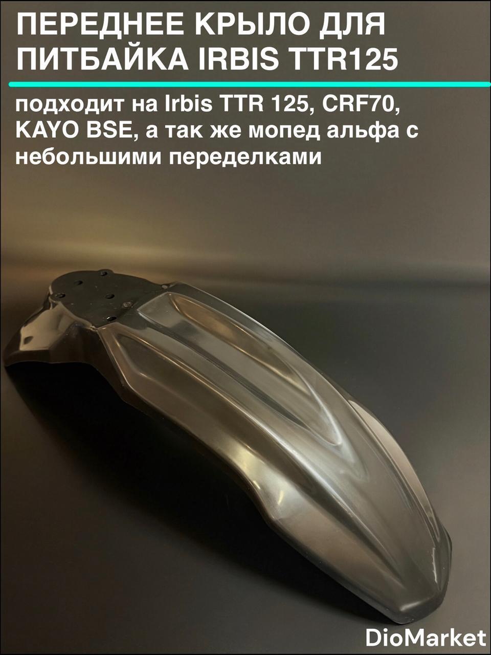 Переднее крыло для питбайка Ирбис ТТР 125, так же крыло подходит на мопед альфа с минимальными переделками (паяльником надо сделать другие отверстия). изготовлено из прочного ABS-пластика черного цвета, который не трескается при деформации. Качественная запчасть обеспечивает защиту от грязи и брызг при езде по пересеченной местности. Крыло переднее кроссовое идеально подходит для моделей Irbis TTR 125, CRF70, KAYO BSE и аналогичных питбайков с соответствующими размерами креплений. Крепление осуществляется винтами с расстоянием между отверстиями 45 мм и диаметром 9 мм. Переднее крыло мотоцикла надежно защищает переднее колесо от повреждений и грязи. Установка крыла на питбайк не требует специальных инструментов. Материал: ABS-пластик, цвет черный. Совместимость подтверждена производителем. Идеальное решение для ремонта и обслуживания вашего питбайка.