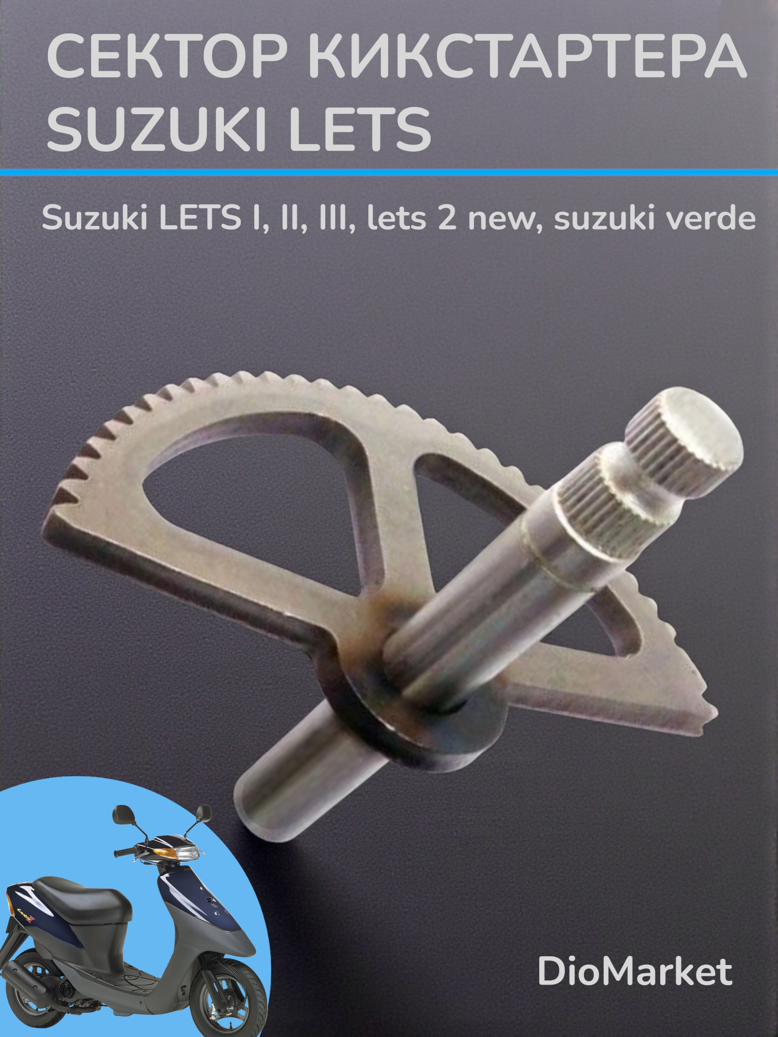 Полумесяц кикстартера Suzuki LETS - Оригинальный посадочный сектор кикстартера для скутеров Suzuki LETS. Ключевая деталь механизма запуска, обеспечивает четкое сцепление с шестерней и надежную работу пускового привода. Прямая замена штатного элемента, производится из стали, полностью совместим с моделями скутера Suzuki LETS I, II, III, lets 2 new, suzuki verde. Устанавливается в паре с ведущей шестерней (храповиком), что гарантирует стабильный запуск двигателя объемом 50 см³ и восстановление функционала кик-стартера. Подходит для ремонта при износе или поломке штатного сектора.